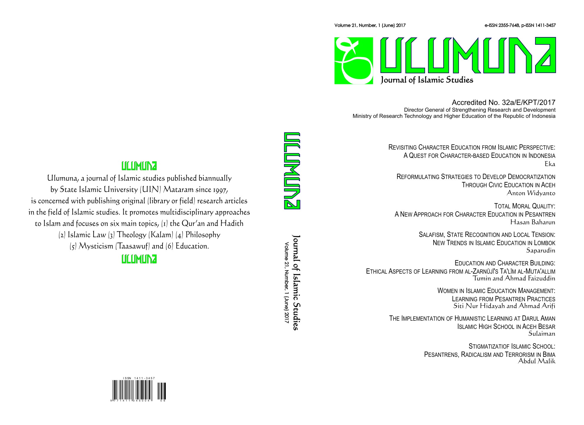 This issue contains the theme of Islamic Education. Available online since June 30, 2017. All articles in this issue (8 original research articles) were authored/co-authored by 10 authors from Indonesia, and Malaysia.